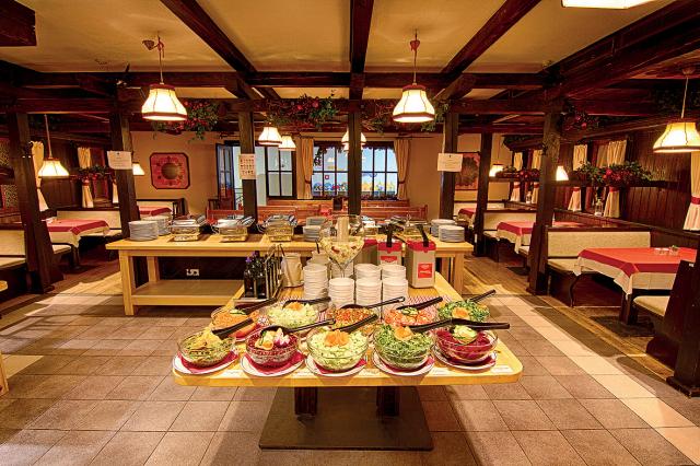 #večera: formou bufetu s výberom z 4 hlavných jedál s prílohou, 2 polievok, studených predjedál, šalátov a dezertov, nápoje za poplatok; 3x týždenne tématické večery