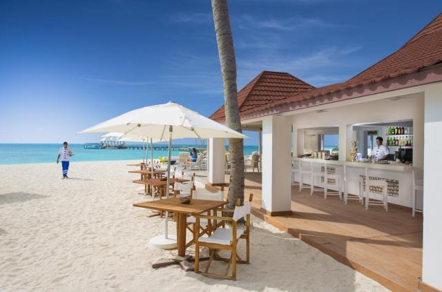 | 60 izieb, recepcia, bufetová reštaurácia, 3 reštaurácie à la carte (ázijská, maldivská, morské plody), 3 bary, posilňovňa, SPA, potápačské centrum |