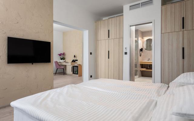 | Saunový svet Saunový svet, ktorý sa nachádza na prízemí hotela, ponúka širokú škálu sáun na načerpanie energie pre vaše telo aj dušu. Hostia si môžu vybrať z fínskej sauny, infračervenej sauny, aróma kabíny a parnej kabíny. Po saune sa o dokonalú regeneráciu postará tropická sprcha. |