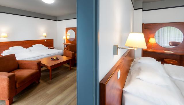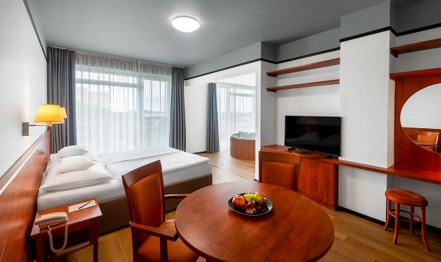 príjemný komfortne vybavený hotel s unikátnou možnosťou vstupu zadarmo do priľahlých kúpeľov Bükfürdő so širokou ponukou liečebných procedúr a mnohých možností vodnej zábavy pre deti aj dospelých#k dispozícii aj vlastné hotelové wellness centrum s bazénom#bohatá a chutná kuchyňa vrátane ponuky vegetariánskych alebo diétnych jedál vo forme polpenzie#pohodlné kvalitne zariadené izby#krásna okolitá príroda lákajúca k prechádzkam alebo cykloturistike#Wellness ostrov v západnom krídle#účasť na športových programoch#vstup do termálnych a zážitkových kúpeľov (I. a II. zóna, mimo svet sáun) podľa počtu nocí (pozn. vstupy sú neobmedzene podľa prevádzkovej doby a sezóny)#župan