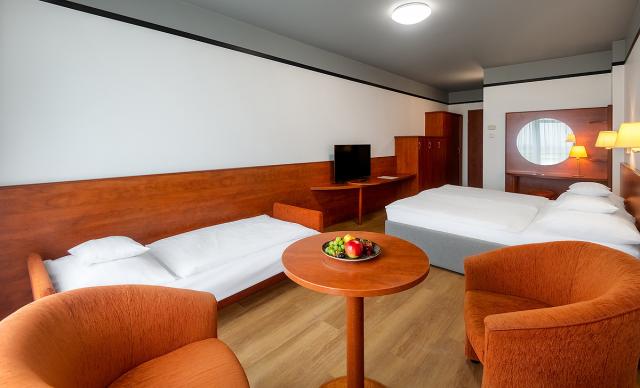 Standard 2/3 balkón: izba s manželskou posteľou či 2 samostatnými lôžkami, sociálne zariadenie, z 50 % balkón; 3. lôžko formou prístelky či pevného lôžka