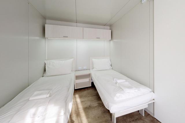 sociálne zariadenie, terasa, max. 5 dospelých osôb #mobilhome 5: 1 spálňa s manželskou posteľou, 1 spálňa s 2 samostatnými lôžkami, obývacia izba s rozkladacou pohovkou pre 5. osobu a kuchynským kútom, sociálne zariadenie, terasa, max. 5 dospelých osôb |