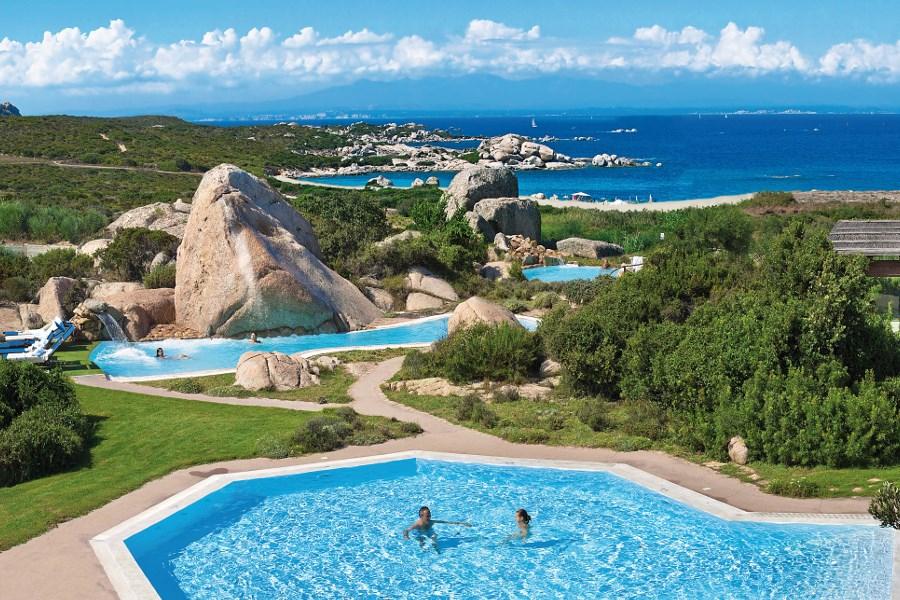 | V hotelové zahradě jsou malé romantické plážičky s opalovacími lehátky zdarma, které jsou vyhrazeny pouze pro klienty hotelu. V docházkové vzdálenosti je krásná dlouhá písečná veřejná pláž La Licciola, kde je část s plážovým servisem vyhrazena pro klienty hotelu. Přímo z resortu lze jet na celodenní lodní výlety na souostroví La Maddalena, které se nachází přímo před resortem, a na ostrovy na jihu Korsiky. |